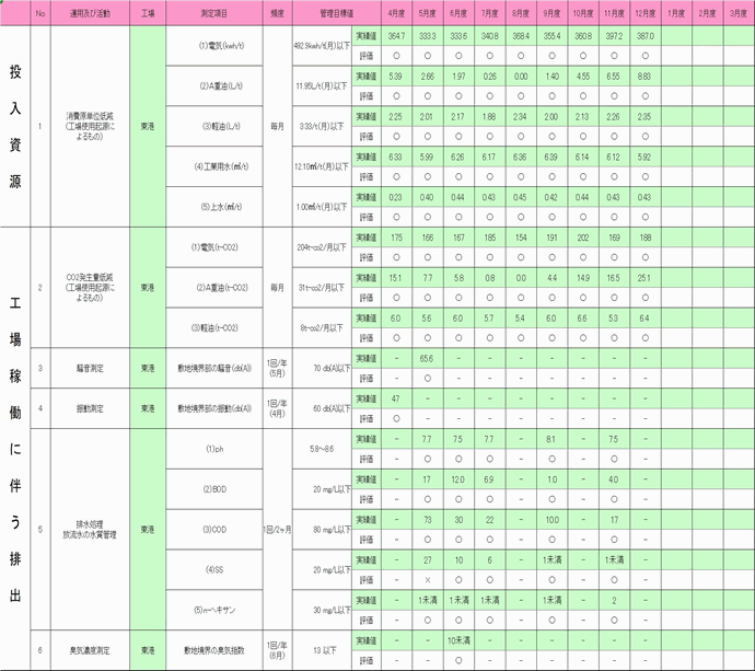 東港工場/各項目の基準値